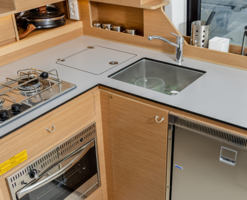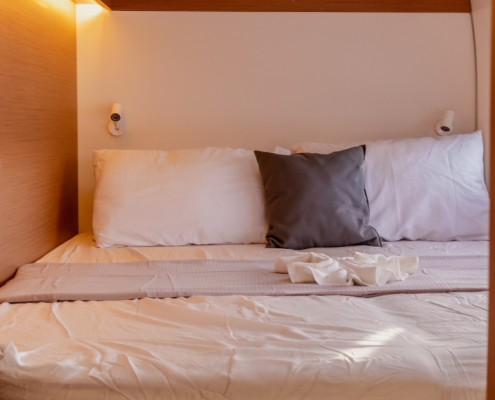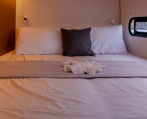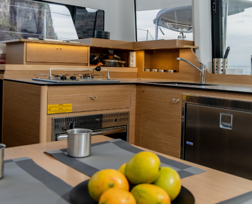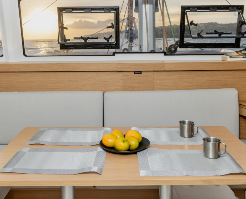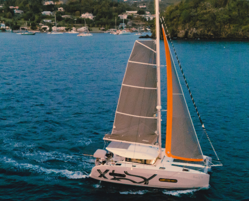 Despite its luxurious amenities, Pura Vida doesn’t compromise on performance. Its lightweight construction and carefully designed rigging make it an agile and responsive sailor, ideal for exploring the turquoise waters and hidden gems of the Grenadines. Easy to handle and equipped with all the latest technology, Pura Vida offers both seasoned sailors and first-time charterers an exceptional experience on the water.