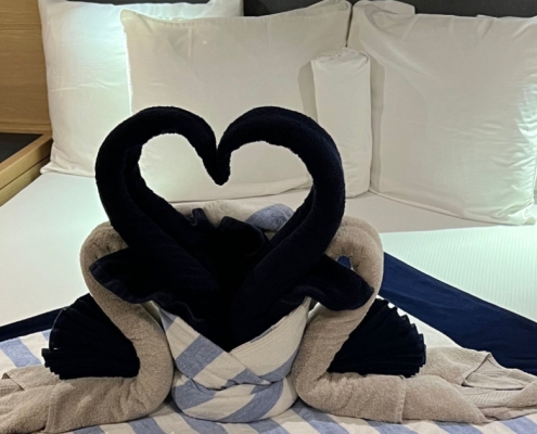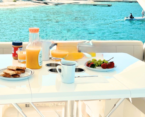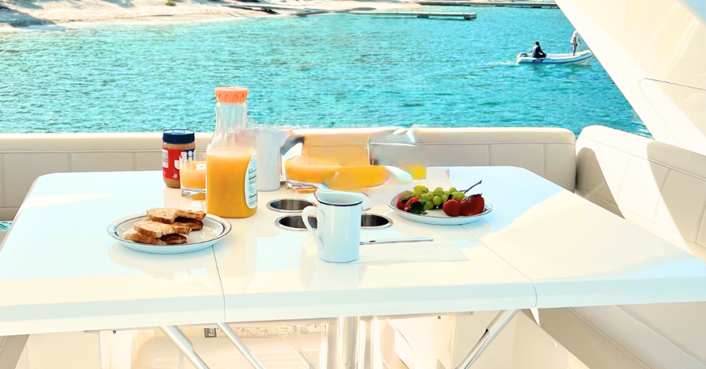 What truly sets this yacht apart is its performance. Cruising comfortably at 18 knots, Dancing Dolphin opens up the entire island chain in a way sailing yachts simply can’t. Breakfast in Bequia, snorkel the Tobago Cays by midday, and cocktails in Canouan by sunset, without ever feeling rushed. Less time underway, more time experiencing.