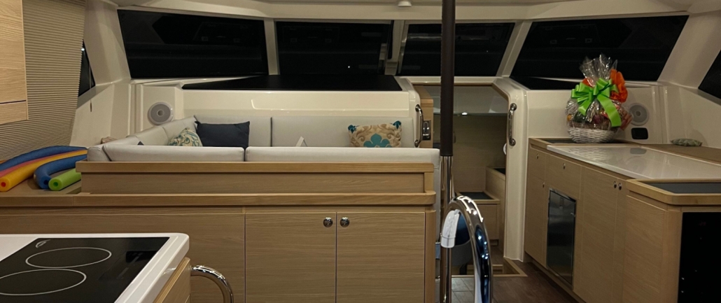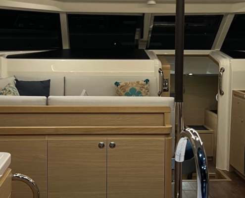 Designed for those who value both comfort and capability, Dancing Dolphin delivers a smooth, stable ride paired with the kind of space and refinement typically reserved for much larger vessels. Wide beam proportions create expansive living areas, from the panoramic flybridge to the light-filled saloon and generous aft cockpit, perfect for entertaining, unwinding, or simply soaking in the beauty of the Grenadines.