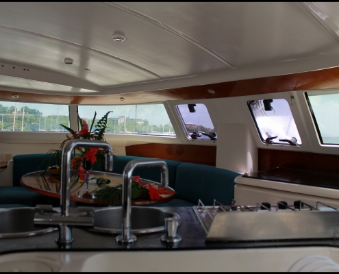 Inordinate is a nice clean well ventilated, quick and inexpensive boat for larger groups of up to 8 people who are looking to save big by not chartering a newer boat.