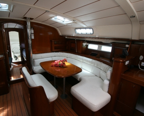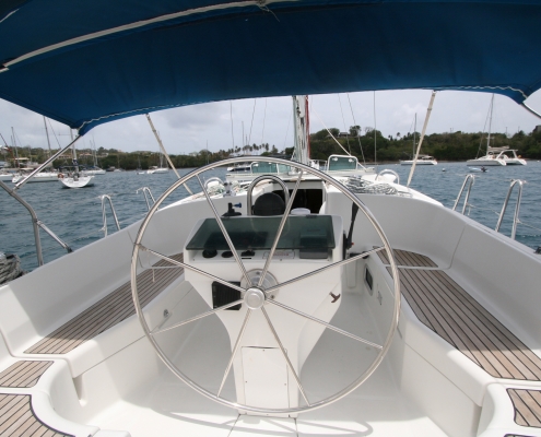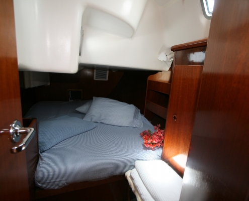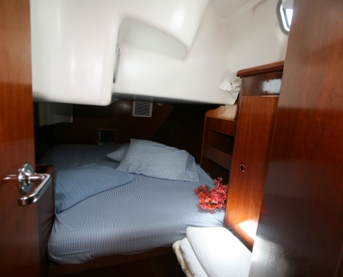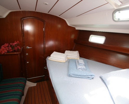 The Beneteau 41 Lady Di is a popular yacht and has three double staterooms and 2 heads/showers. This layout her ideal either for 3 couples or for smaller groups looking for the additional comfort and space of a larger yacht. Lady Di is fun and easy for two people to sail and perfect for small families who are looking to save big over a newer boat.