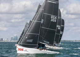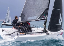 The hull design is sleek and comfortable with large radius edges. A sexy, sharp bow delivers maximum upwind performance. The stable, flat aft and asymmetrical spinnaker gives way to an exhilarating, fast and fun planing experience. The Melges 20 is extremely easy to sail with a crew of 2 to 5 depending on the wind and what you wish to do with her.