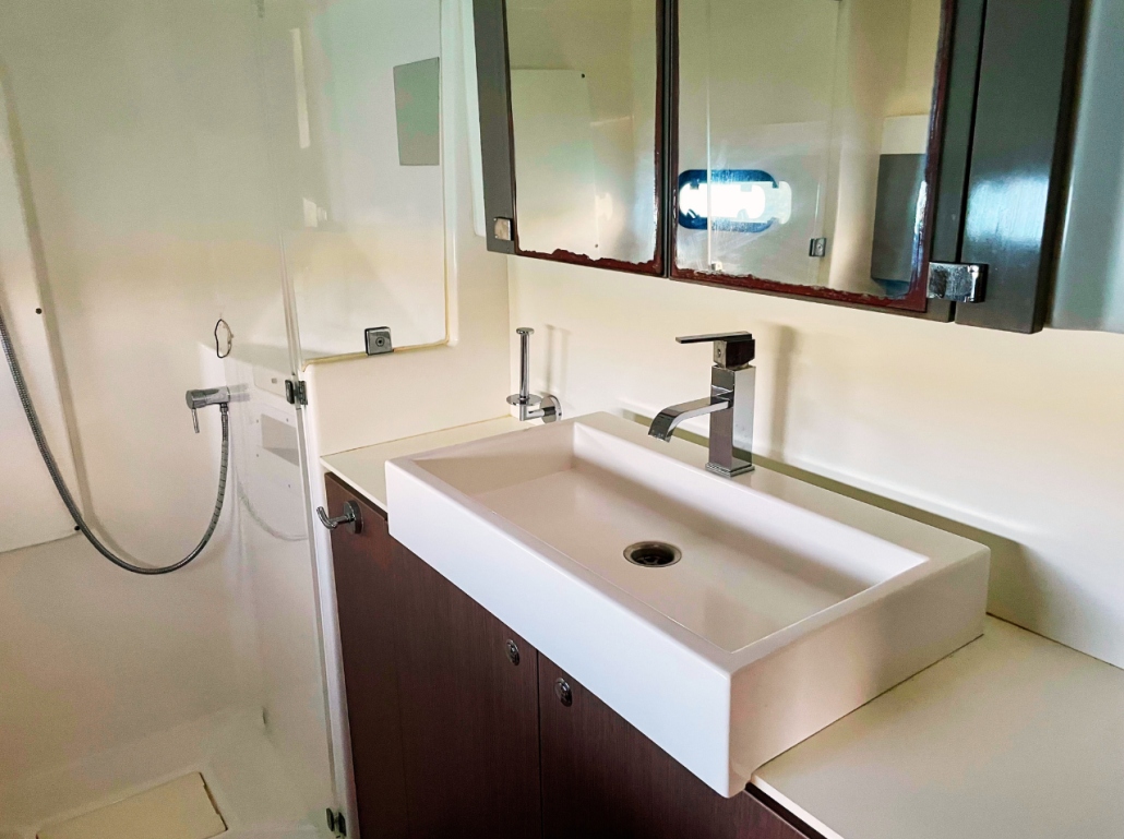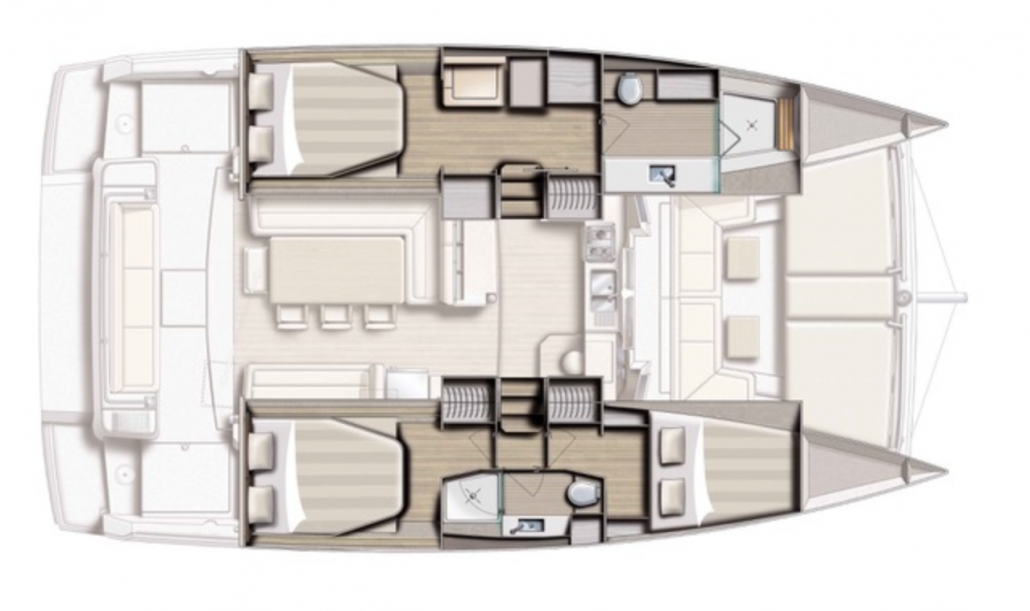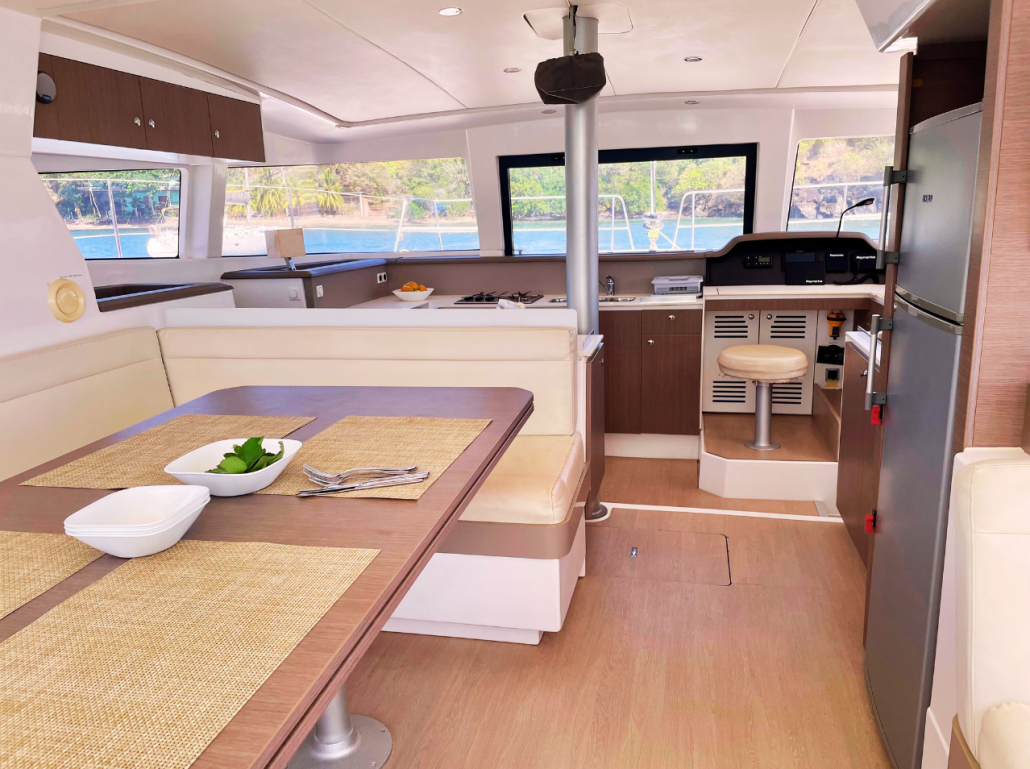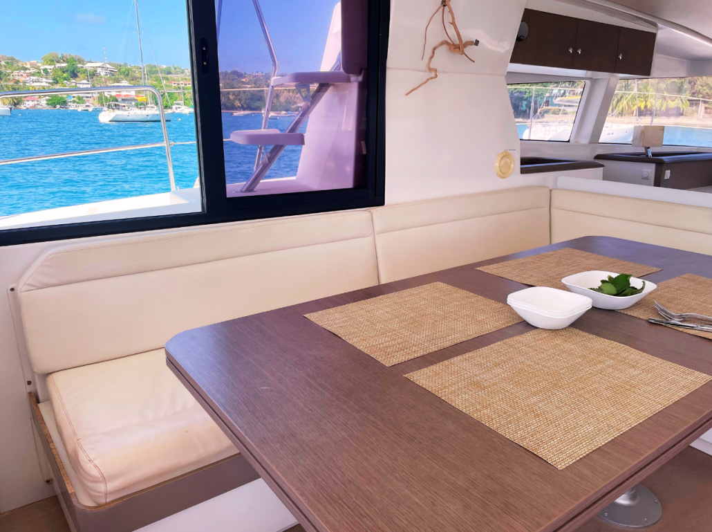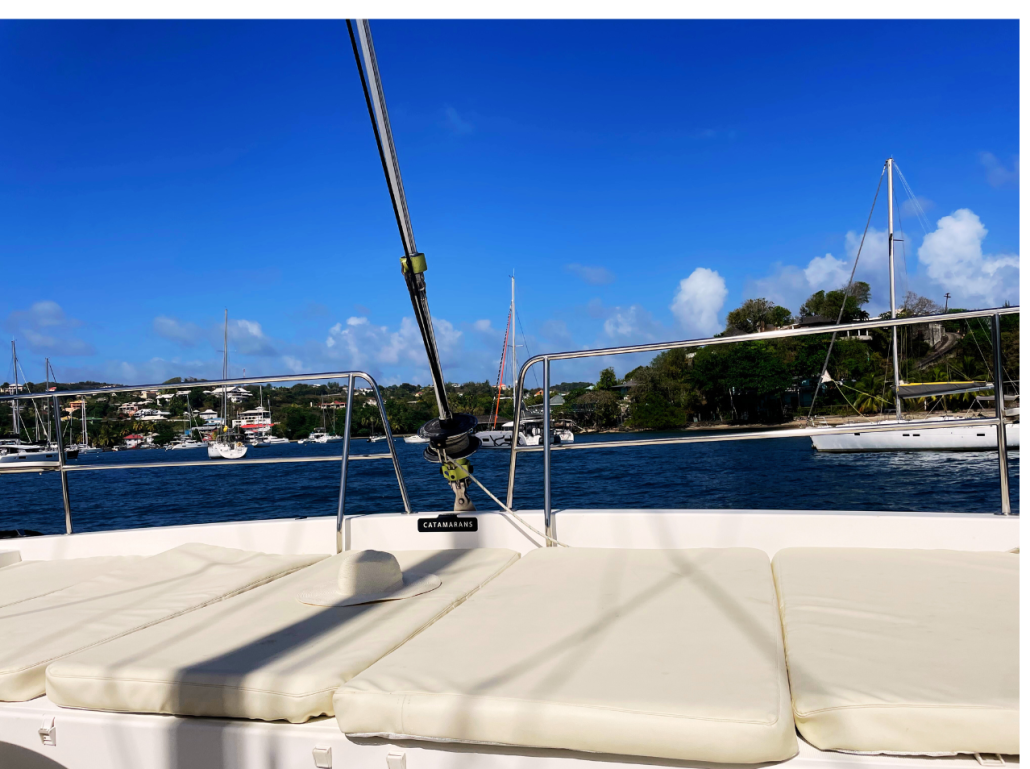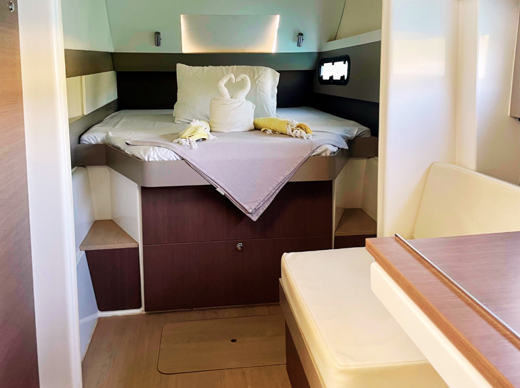 Our Bali 4.1 is a 2020 built catamaran with 3 staterooms and two heads. She is very easy to sail with a simple jib and main setup and electric winches. The owners stateroom takes up the entire port hull and has an en-suite toilet and shower. She is fully loaded with a generator, air conditioning, electric toilets, an entertainment system and even underwater lights to create that special ambiance in the evenings. The Bali 4.1, is the first sailing catamaran, totally bridged from its bows to its back boards, offering a fully open and ergonomic living space. Viewfinder has a large front cockpit with sun-beds and a removable awning along with a breathtaking relaxation area on the bridge deck for sunbathing. Viewfinder is pure luxury and the perfect boat to spoil yourself and your crew.