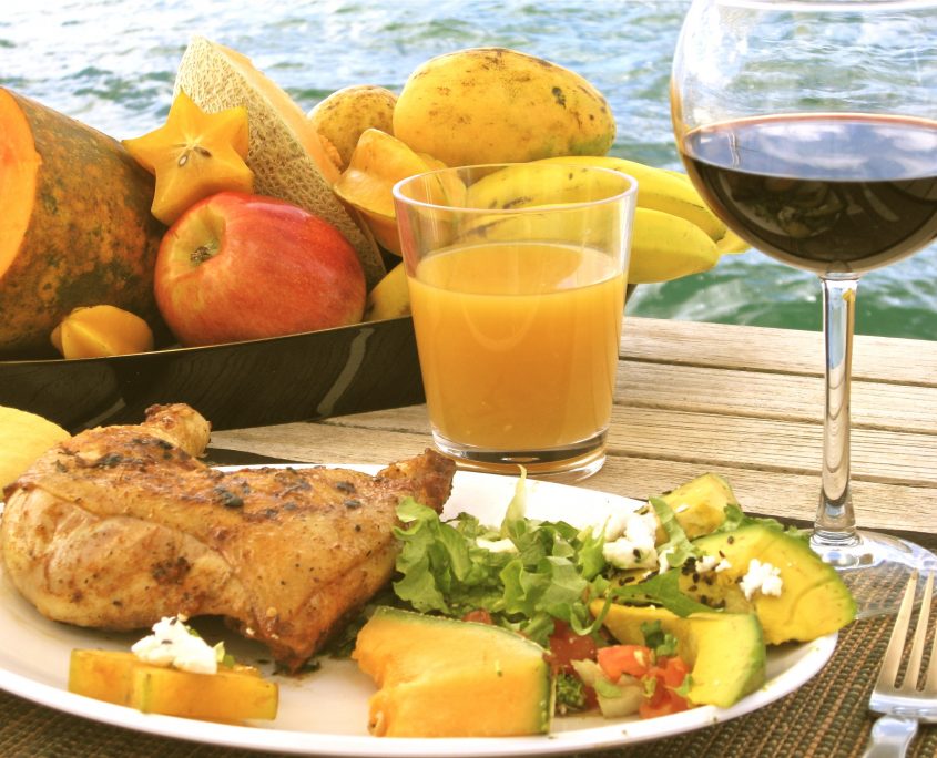 Meals are packaged with sailing in mind. Easy to prepare outside so as not to heat up the saloons. Restaurant gourmet meals made to be enjoyed on-board.